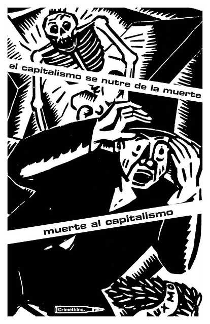 El mercado quita vida y deja destrucción a su paso. Te obliga a vender las horas insustituibles de tu vida para enriquecer a jefes y burócratass: la muerte a plazos. Recompensa a los terratenientes por desahuciar familias, a los ingenieros por inventar máquinas de guerra, a los políticos por la gentrificación y el genocidio.